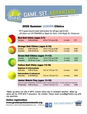 Sign up for fun game-based tennis lessons. GPTL mentors youth development, not just player development. Our coaches mentor tennis instruction for all ages and levels through a pathway of Red Ball, Orange Ball, Green Ball, and Yellow Ball where students learn the skills and strategies to play tennis. Outdoor sessions at the Maple St. Park tennis courts are located at 1430 Maple St., Pottstown.