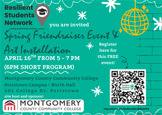 Resilient Students Network (RSN) invites community members, partners, and supporters to its Spring Event and Art Installation on Wednesday, April 16 from 5:00 to 7:00 PM at Montgomery County Community College, Pottstown Campus, North Hall.